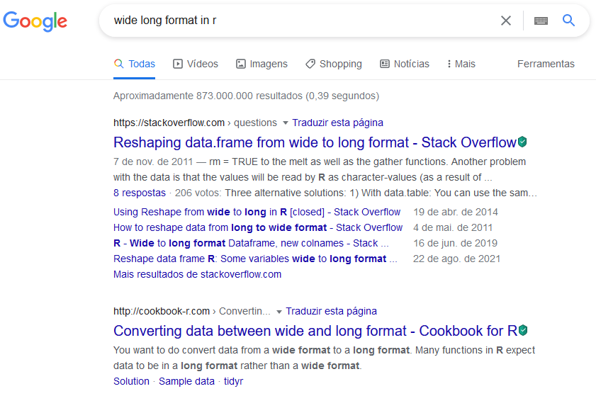 - Caso não saiba quais funções/pacotes são utilizados para resolver um problema, muitas vezes é possível encontrar a solução no Google utilizando palavras-chave (preferencialmente em inglês) junto de “R”.