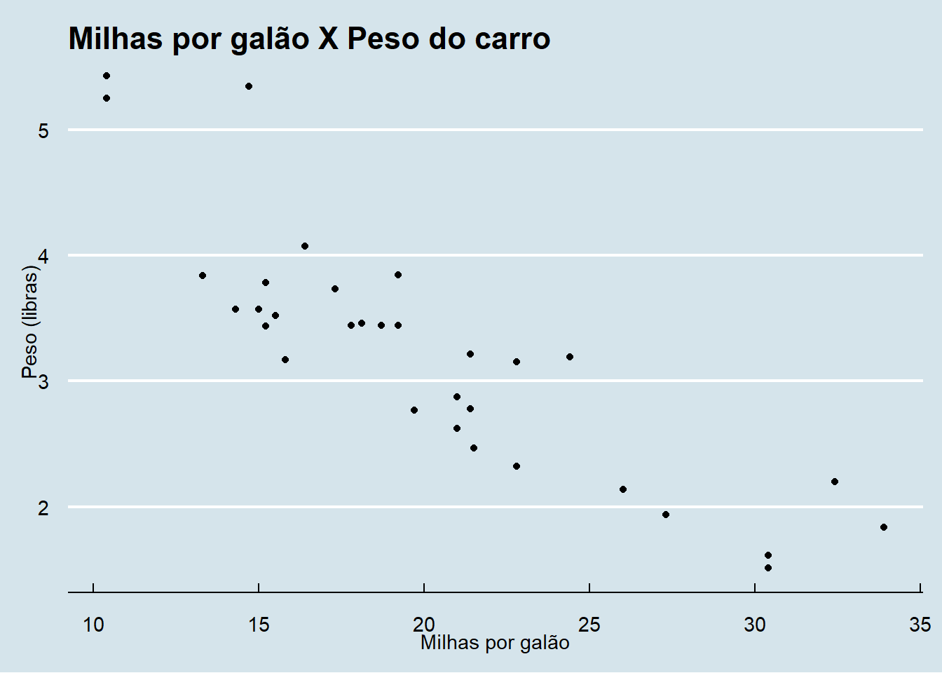 ylab("Peso (libras)") + xlab("Milhas por galão") +