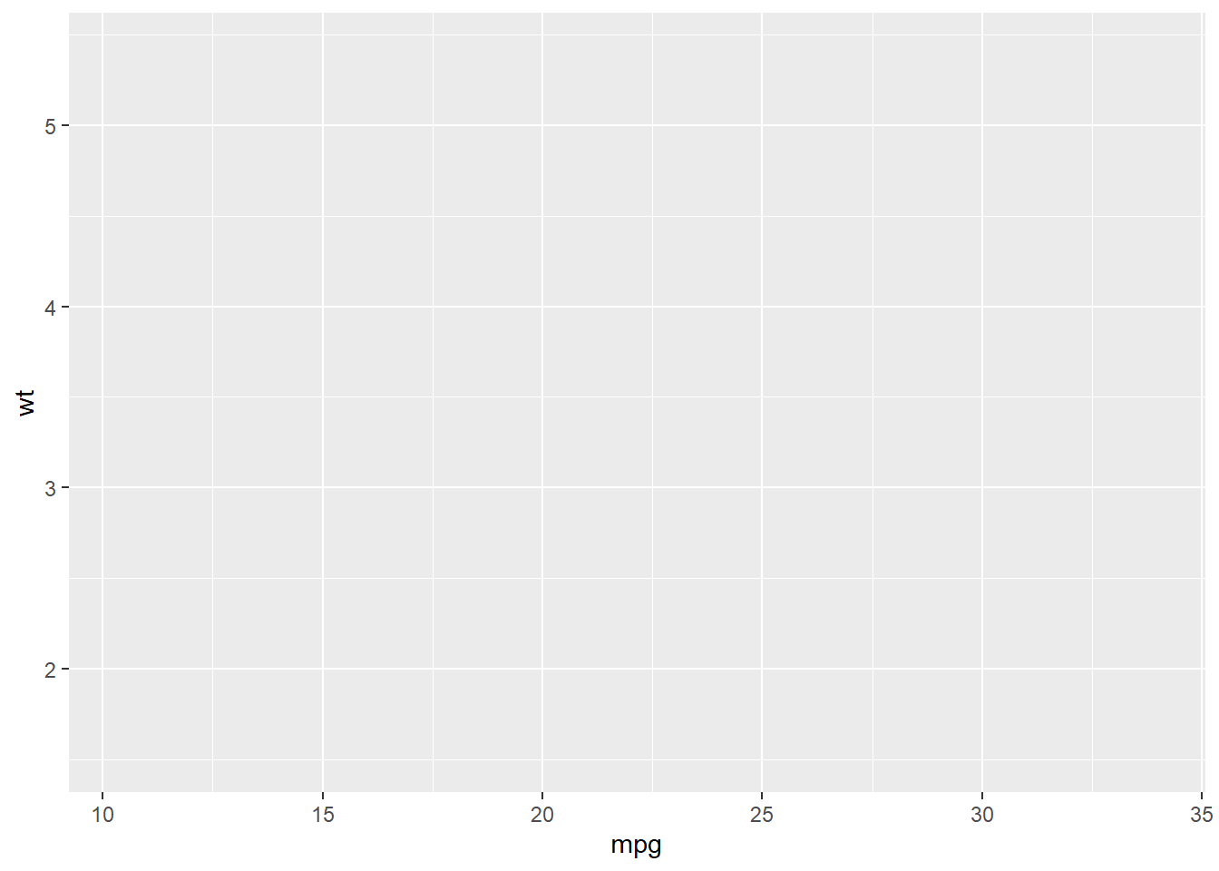 g = ggplot(data=mtcars, aes(mpg, wt)) # Criando a base do gráfico