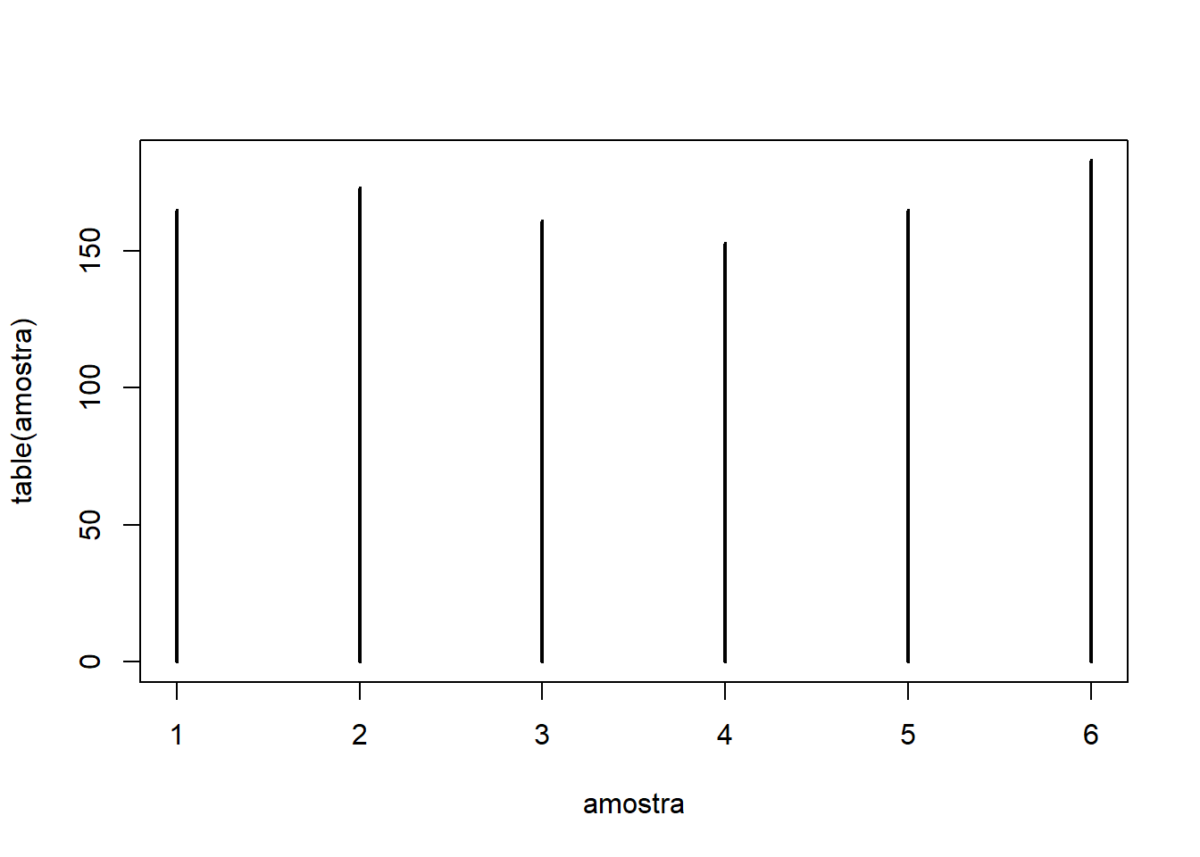 amostra = replicate(1000, expr=sample(1:6, 1))