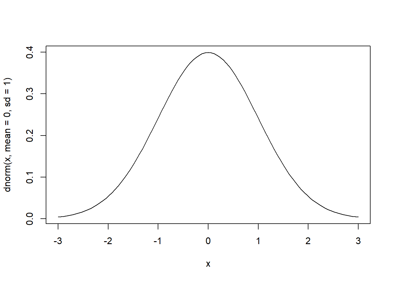 curve(dnorm(x, mean=0, sd=1), from=-3, to=3)