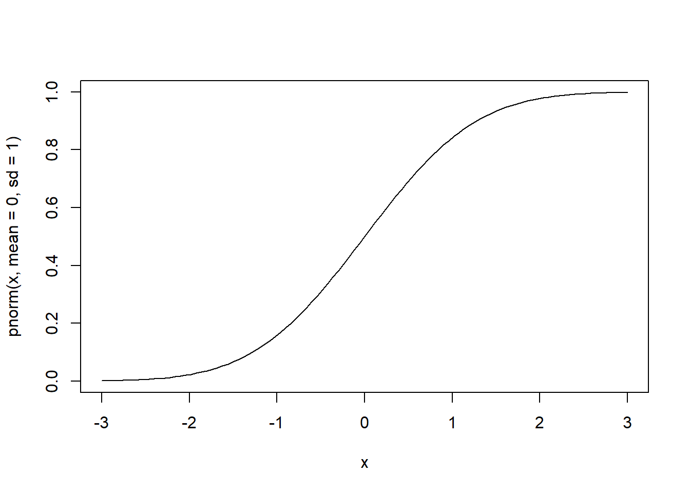 curve(pnorm(x, mean=0, sd=1), from=-3, to=3)