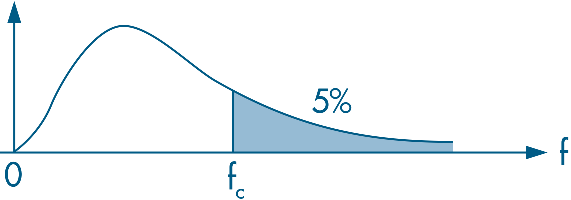 • Depois, avalia-se a estatística F a partir de um teste unicaudal à direita em uma distribuição F: